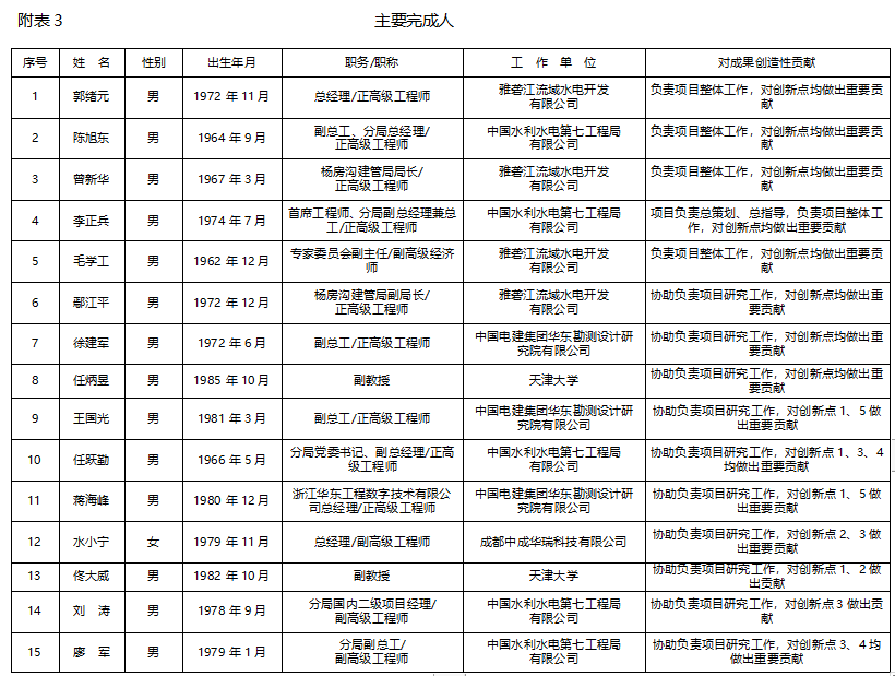 现将“大型水电站防渗工程智能建造关键技术研发与应用”成果申报2021年度四川省科学技术奖进行公示。公示期为2021年5月21日-2020年5月27日。